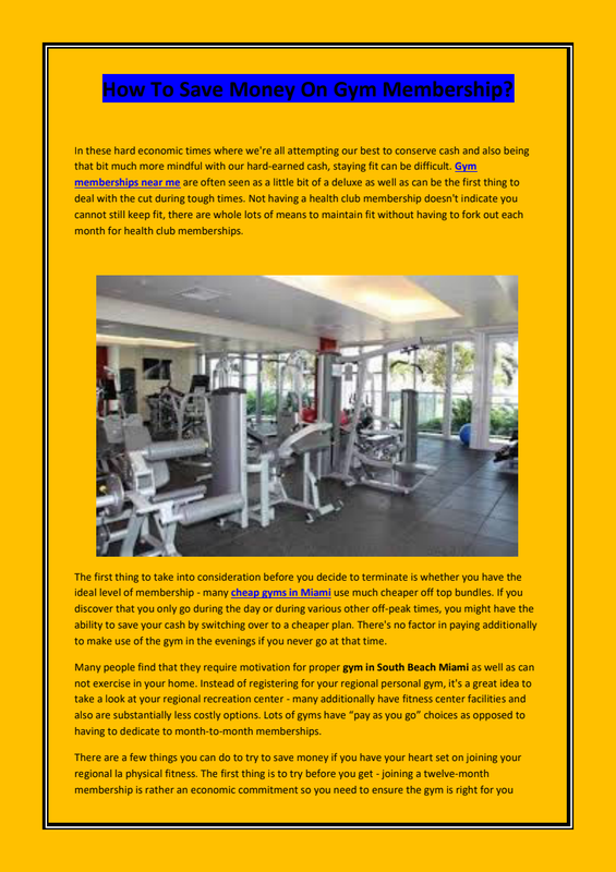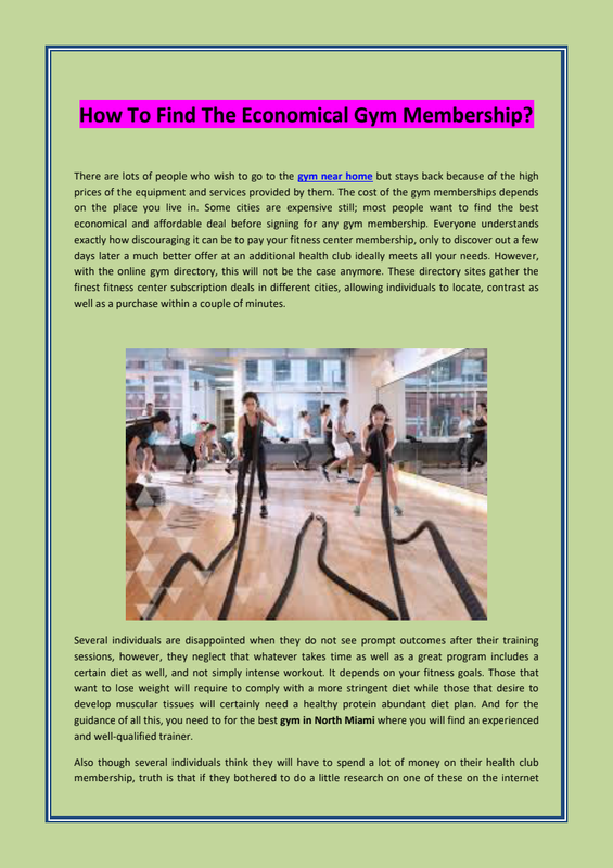 Searching for the ideal regional affordable gyms in Miami can be quite difficult specifically if you simply relocated to that area. Whether you intend to participate in fitness or the boxing health club to help on your own get into shape I have located the excellent remedies to aid you. There are great deals of websites around the web today that can help you find the most effective fitness centers near your area.