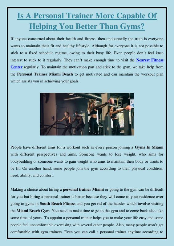This sort of area likewise offers the right atmosphere of the gyms in Miami Beach that could inspire people to keep their workout regimen. This is the reason why great deals of individuals keep coming back to health clubs to work out as a result of these benefits.